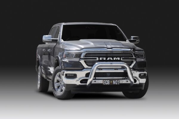 This ECB Nudge Bar has been designed specifically to suit the Ram 1500 DT Laramie and will provide frontal protection and enhance the aesthetics of the vehicle. Designed and manufactured in Australia to suit our harsh conditions, this Nudge Bar is formed from 100mm high tensile alloy tubing that will never rust or corrode. ECB Nudge Bars comes standard with spotlight mounting tabs. Our Nudge Bars are built stronger and substantially lighter than poorer quality, thinner sectioned imported stainless steel alternatives and come with a lifetime warranty. Your ECB Nudge Bar is available in a mirror polished finish or choose from one of our low maintenance powder coat finishes.