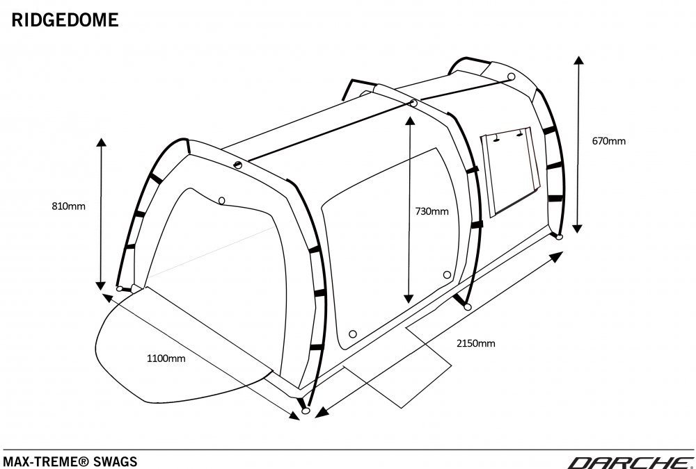 An exciting freestanding model, the Ridgedome is the latest addition to the premium Max-Treme® range. Evolving the highly successful Dusk To Dawn design, the Ridgedome is a roomy touring style swag featuring an oversized center ridge pole. At 1100mm wide with convenient 3 way entry, you can sleep either at the head or toe end!