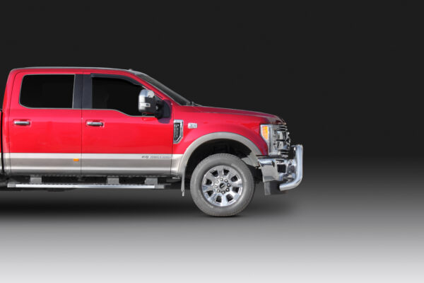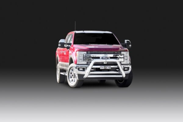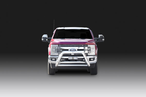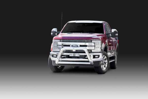This ECB Nudge Bar has been designed specifically to suit the Ford 250 Super Duty and will provide frontal protection and enhance the aesthetics of the vehicle. To suit the Lariat & King Ranch with Adaptive Cruise Control, and all Platinum models, or vehicles fitted with Ultimate Trailer Tow System. Designed and manufactured in Australia to suit our harsh conditions, this Nudge Bar is formed from high tensile alloy tubing that will never rust or corrode. ECB Nudge Bars comes standard with spotlight mounting tabs, incorporates front parking sensors and accomodates front camera. Our Nudge Bars are built stronger and substantially lighter than poorer quality, thinner sectioned imported stainless steel alternatives and come with a lifetime warranty. Your ECB Nudge Bar is available in a mirror polished finish or choose from one of our low maintenance powder coat finishes.