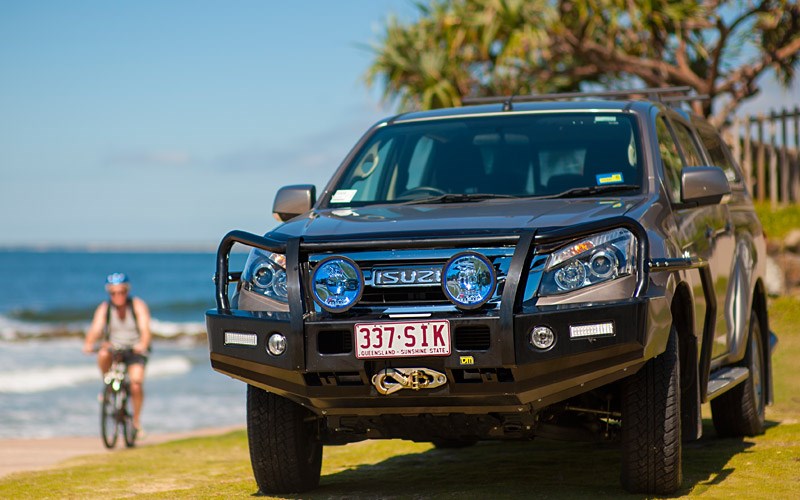 Sporting sharp looks and cutting-edge performance, a TJM Signature bull bar will add value to your Isuzu D-MAX 06/2012 – 01/2017. TJM Signature bull bars blend style and uncompromised protection in an attractive package. Our high strength, multi-fold steel channel design is backed by a tough central chassis that mounts securely to your vehicle for maximum frontal protection. This TJM Outback bull bar is 4×4 equipped with a steel winch-mount, fog lights, LED combination lights, and reinforced T-slot recovery jack points. It’s ready to work for you with dual aerial mounts and mounting points for installing large driving lights. Combining classic styling with premium features, TJM’s Outback bull bar range offers uncompromised frontal protection for your 4×4.