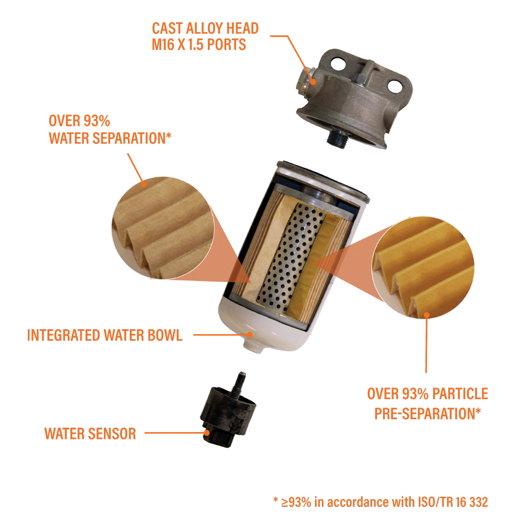 With a 100% water separation efficiency rating (based on 300um droplet size) and a long service life, meeting the specifications set by leading manufacturers of diesel fuel injection systems, this PreLine-Plus pre-filter kit will reliably protect your fuel system from corrosion, abrasion and the frequency of repairs reduced.
