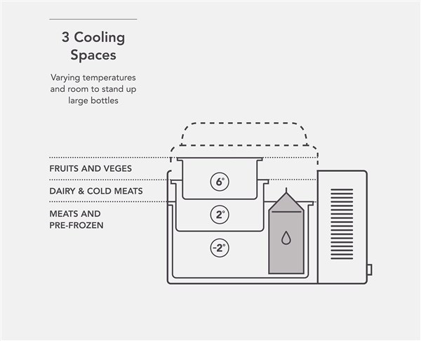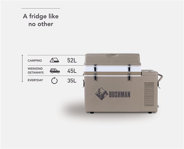 Bushmans unique 35L – 52L extension kit is included. So you can adjust the fridge from 35L, to 42L, 45L and right up to 52L. There’s separate areas for your frozen food, fridge items, crisper and tall bottles, which also makes it easier to access food that’s stuck on the bottom.