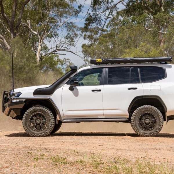 TJM’s modular range of side protection steps offer easy access and lower side protection for your Toyota LandCruiser 300 Series. When combined with side bars your Toyota will have excellent wheel arch, flare, sill and panel protection. Designed to work in conjunction with the frontal protection systems of a bull bar and prevents air bag deployment for softer collisions. Our modular design gives you the option to install side steps first, then add side bars later.