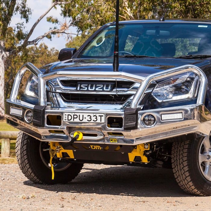 A genuine TJM Signature bull bar with sporting sharp looks and cutting-edge performance provides the perfect blend of style and uncompromised protection for your Isuzu. This TJM Signature bull bar is 4×4 equipped with a steel winch-mount, integrated rated recovery points, LED fog lights, LED combination lights, dual aerial mounts and mounting points for installing large driving lights. Our high strength, multi-fold alloy channel design is backed by a tough central chassis that mounts securely to your vehicle for maximum frontal protection. Upper pipework provides additional strength, obstacle deflection and headlight protection. Tapered side-wings assist with approach angle when off-road and taking on rises in the terrain. Whether you are in the big smoke or carving out your own adventure, the TJM Signature range is an Aussie legend in the making.