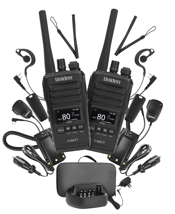 Uniden 5 Watt UHF CB Splashproof Handheld Radio – Deluxe Pack